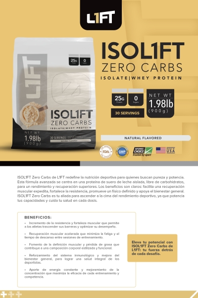 Eleva tu potencial con ISOL1FT Zero Carbs de L1FT: tu fuerza detrás de cada desafío.
